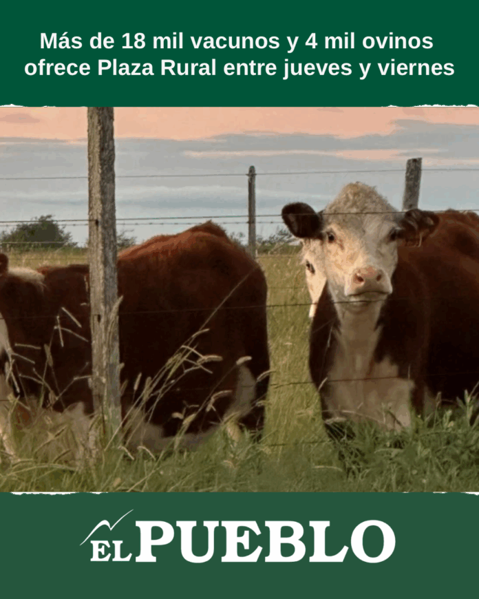 Este jueves 6 y viernes 7 de noviembre Plaza Rural vuelve a ofrecer una gran oferta en volumen y calidad, con las mejores condiciones de compra del mercado y con la financiación del Banco de la República. Son 18.030 vacunos y 4.355 lanares los que integran la oferta Plaza Rural en el remate 312, en venta presencial en el Hotel Cottage y con transmisión a través de canales cable, internet y streaming.