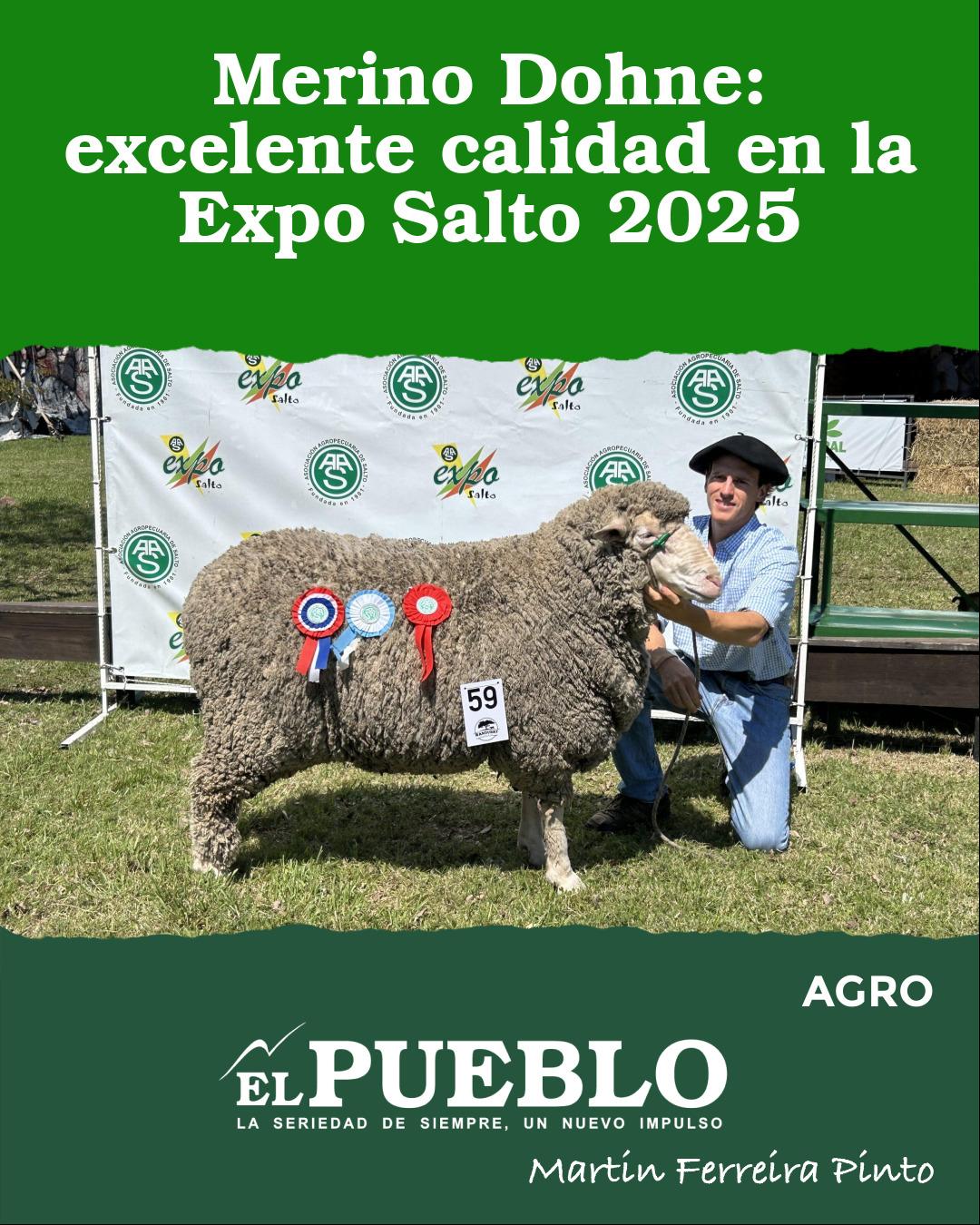 Durante la Expo Salto 2025, el ingeniero Matías Orihuela, técnico del SUL y jurado en la pista de Merino Dohne, destacó la calidad de los animales presentados en la exposición. A pesar de que la muestra fue pequeña, Orihuela señaló que “no por ser pocos dejaron de ser ejemplares de excelente calidad, con muy buena conformación y vellón bien estructurado”.