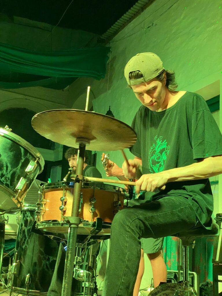 Teo Lebon (batería) – Baterista, Compositor y Docente. Músico explorador, con una formación diversa que abarca estudios académicos y aprendizaje con referentes del jazz y la música popular. Actualmente cursa la Licenciatura en Jazz y Músicas Creativas en UTEC. Su enfoque fusiona el jazz con influencias andinas y africanas, explorando texturas y ritmos con una visión experimental. Ha tocado en festivales, jams y proyectos propios como Micelio y Adobe, además de colaborar con diversos artistas. Con experiencia en producción, sonido en vivo y docencia, busca generar espacios de intercambio y creación musical auténtica.