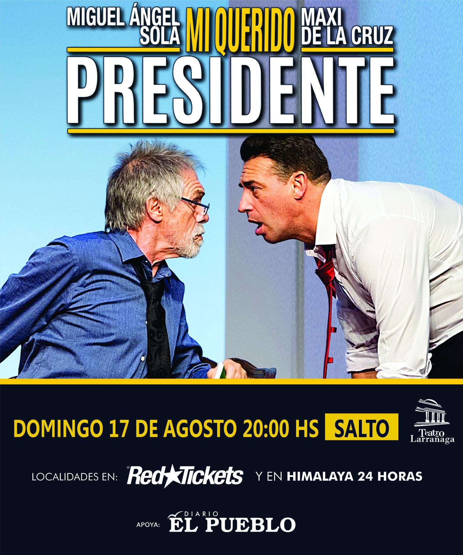 Este domingo 17 de agosto a las 20:00 horas, el Teatro Larrañaga recibirá a dos figuras destacadas de la escena rioplatense: Miguel Ángel Solá y Maxi de la Cruz, quienes presentarán la exitosa comedia “Mi querido presidente”.