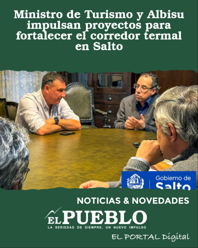 El ministro de Turismo, Pablo Menoni, y el intendente Carlos Albisu se reunieron en Salto para impulsar proyectos en Arapey, Daymán y el corredor termal, clave para el desarrollo turístico.