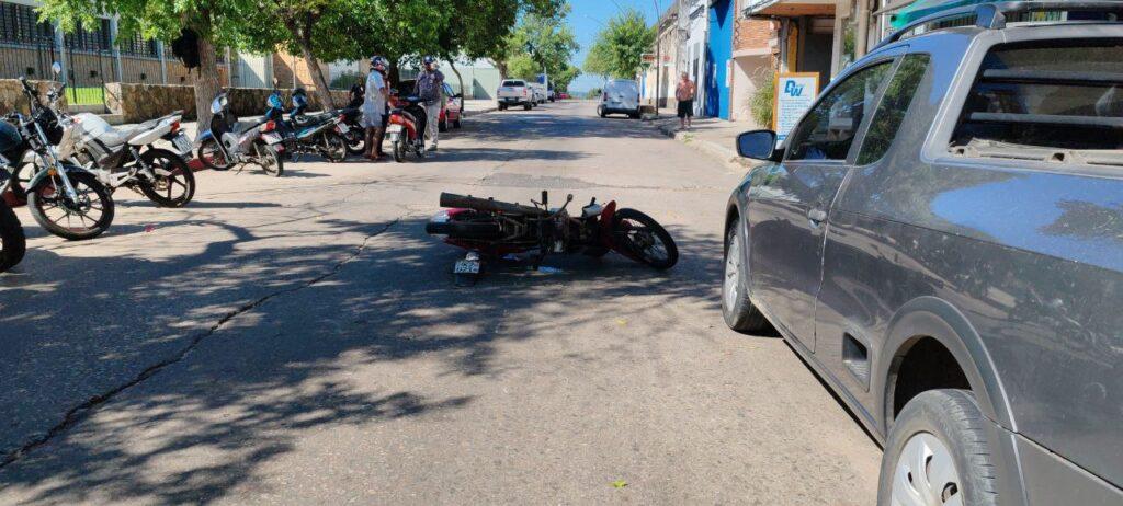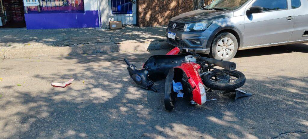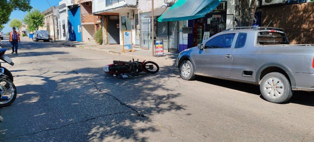 Según información policial, el hecho se produjo cuando el chofer de una camioneta estacionada abrió la puerta del vehículo, impactando a la motociclista, quien perdió el equilibrio y cayó al suelo.