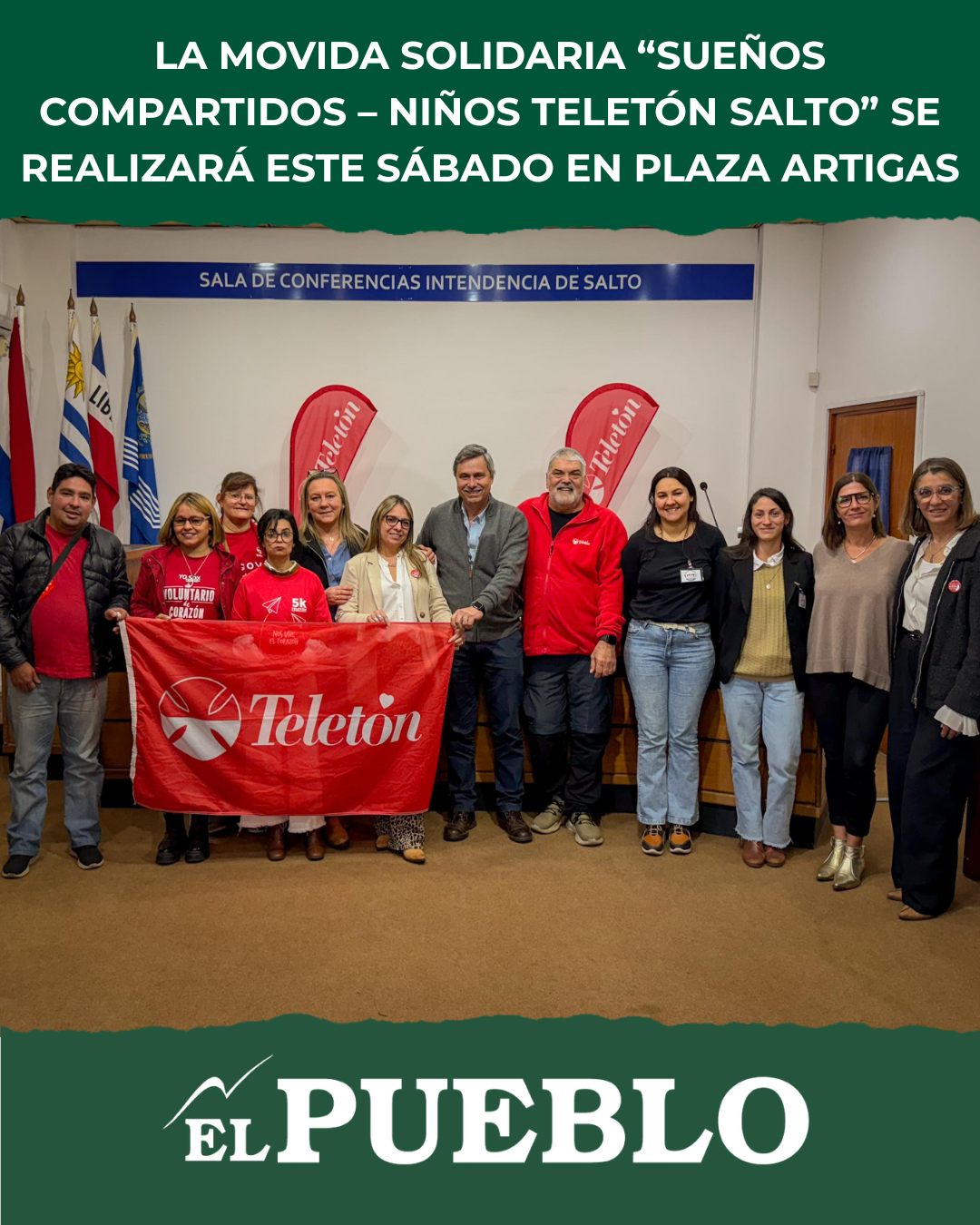 Los organizadores de la movida solidaria “Sueños Compartidos – Niños Teletón Salto” resolvieron ajustar su plan original ante el pronóstico de lluvias. Lo que iba a ocurrir el viernes se trasladará finalmente al sábado 8 de noviembre, desde las 18:00 horas, en plena Plaza Artigas, corazón abierto de la ciudad y punto de encuentro obligado cuando la consigna es colaborar.