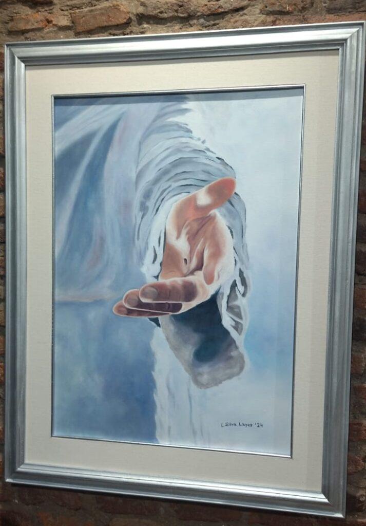 “Lo que se ve en la muestra es el resultado final, cada uno fue dejando su impronta, en mi caso asumí un desafío donde mi intención era pintar en telas. Cuando comencé me propuse un objetivo, era pintar una obra que para mí tiene mucho significado es la mano de Jesús extendida, tiene un título especial que le adjudiqué; ‘Te estaba esperando’.
