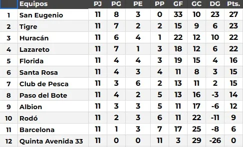 En el caso de San Eugenio, se destaca su condición de invicto con 33 goles a favor, mientras que Santa Rosa presenta el arco menos vencido, con solo 8 goles en contra en 11 partidos.
