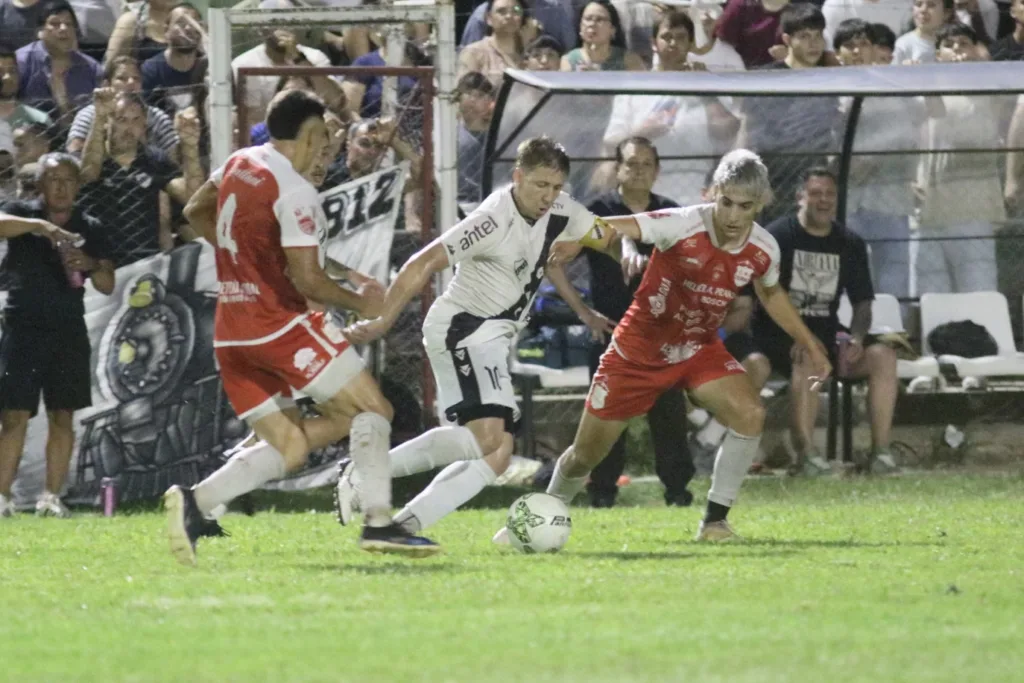 Este registro gráfico de Vicente Massartino de EL PUEBLO, es la elocuencia en sí mismo. Porque es NAHUEL MACHADO el que se propone la maniobra entre Mauro De Mora y Samir Bonasola. Contra la tribuna del Este y con el banco de espera y de técnicos de la franja en un primer plano. La noche en que Nahuel Machado recuperó la esencia de su fútbol en el rol a la medida del criterio que le es básico. Para manejar los tiempos de la salida, de la construcción. La categoría para pegarle a la pelota, para filtrar en la medida que sea posible. Pero sobre todo, para sentirse líder, porque en definitiva lo es. El mejor de todos, en un Ferro Carril de respuesta sólida y sobre todo, en la parcela clave de ese medio campo, para la influencia vital de Franco Silva, Elbio Blanco y el mismísimo Leandro de Mora. El Leandro del pase inapelable en precisión, para que Natanel Tabárez llegase para resolver en el segundo gol. Una manera de asentar la imposición, tras el frentazo inaugural de Daniel Lescano para establecer el primero. Dos veces Campeón Salteño en lo que va transcurriendo de la nueva década (2021 y 2023), Ferro Carril a la definición otra vez. El de Emilio, el «Pato» Avellanal y el «Mono» Ferreira en la Dirección Técnica, más la suma clave del «Profe» Matías Piñeiro. Pero también el del líder Nahuel. Ese crack.