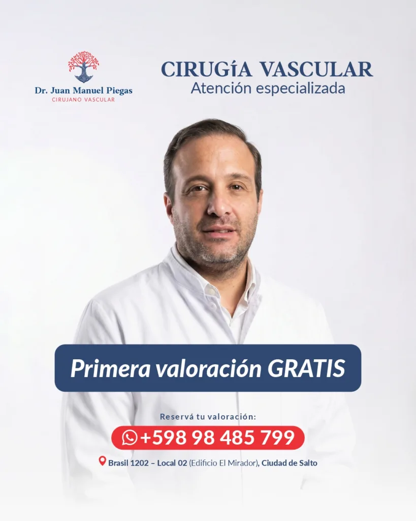 El cirujano vascular Dr.JuanManuelPiegasinicia su actividad profesional en la Ciudad de Salto con un consultorio especializado en diagnóstico y tratamiento de patología venosa y arterial. La propuesta integra técnicas de última generación, atención cercana y la posibilidad de acceder a una primera valoración GRATIS, convirtiéndose en una nueva opción médica para una demanda creciente en el litoral.
