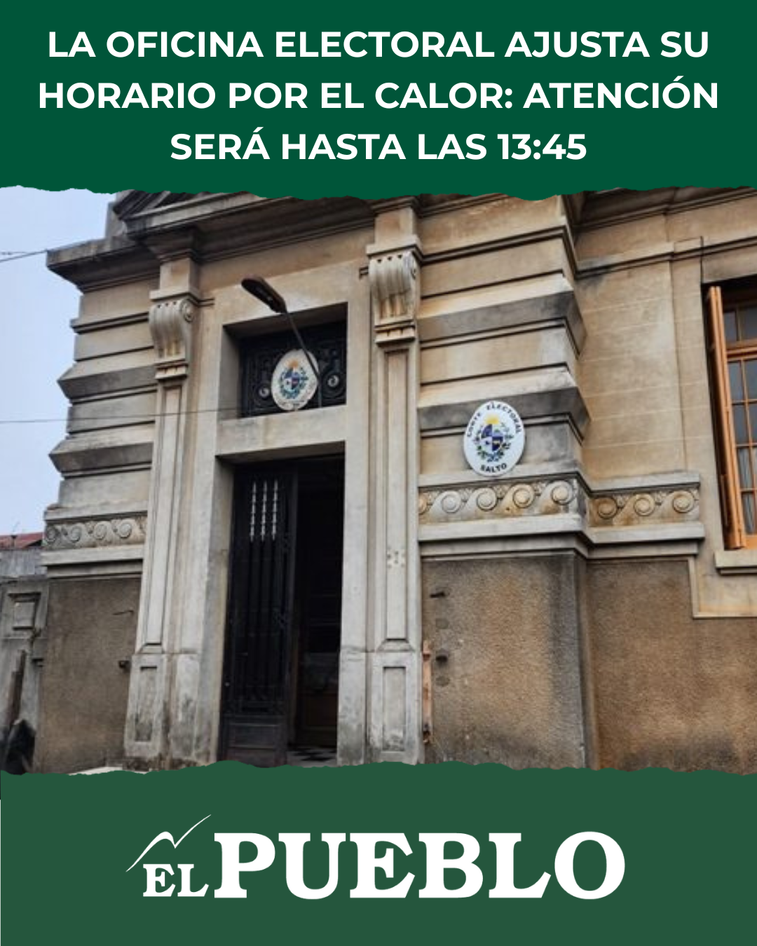 En un comunicado difundido por la propia dependencia, la Oficina Electoral de Salto informó que a partir del lunes 1.º de diciembre implementará un nuevo horario de atención al público. La medida surge, según explica la institución, para optimizar el servicio y adaptarse a las altas temperaturas que ya empiezan a sentirse en la ciudad.