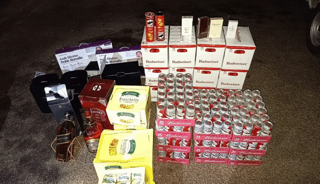 Durante la inspección del vehículo se constataron varios bultos que contenían mercadería presuntamente en infracción aduanera. Entre los efectos incautados se encontraron: