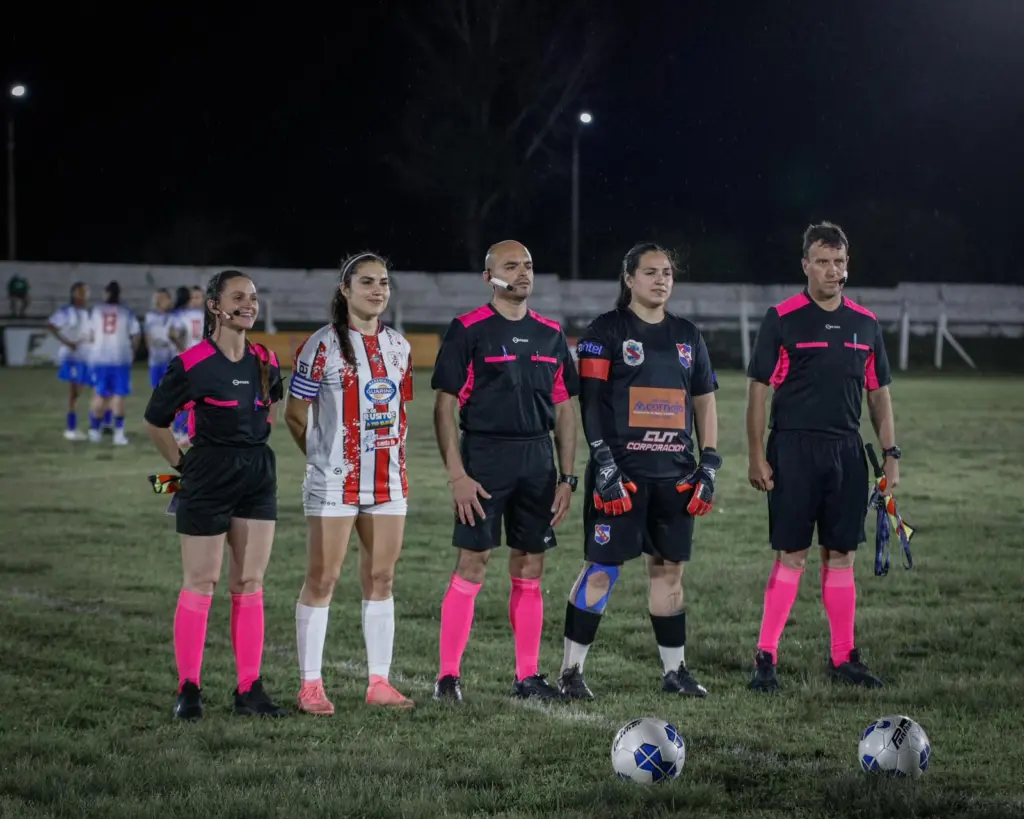 Ahí empieza otra etapa también de mi vida, donde yo me enteré que iba a salir en el 2024 el primer campeonato de OFI de selecciones y que Salto iba a participar. Ahí dije: es mi oportunidad de poder vestir la camiseta de Salto, para mí soy salteña a muerte, defiendo siempre mi departamento en todo sentido y esa era mi oportunidad también en el fútbol. Me entero que los técnicos van a ser los técnicos de Universitario, que yo ya estaba jugando en Universitario, y dije: bueno, ellos me conocen, saben mis sacrificios, saben mi esfuerzo, por ahí me citan. Lanzan la citación, yo estaba nerviosa para verla y quedo como invitada, no quedé seleccionada. Sí, tengo derecho a entrenar, pero a la hora de jugar me pueden citar. Ahí lloré, hablé con mi técnico, me dijo: yo sé cómo sos vos, tenés que redoblar esfuerzos. En ese momento me enojé, después entendí que fue para que yo demostrara que yo tenía que estar. Entrené el doble, salía a correr de mañana, me esforcé en todo sentido. Dije: de repente alguna se lesiona, se baja y yo quedo. Llegada la fecha seguía entrenando, empezaba el campeonato y avisan que se puede llegar hasta 26 jugadoras, que entraban las sparring. Una emoción tremenda para mí saber que ya estar en el banco con la camiseta ya estaba cumplido. Llega el primer partido, me citan, ya iba a estar esperando mi oportunidad para entrar. Empieza el partido, en el segundo tiempo entro, hago un gol. Para mí ya no pedía más nada, ya está. Después de todo el sacrificio de haber sido invitada a jugar, hacer un gol no pedía más. Y las alegrías no terminaban ahí. El segundo año vuelvo a quedar, ya ahí no quedo como invitada, quedo seleccionada y me nombran capitana el año pasado. Un orgullo enorme porque yo sé el sacrificio que hago en el día a día. Hoy por hoy trabajo, tengo mis hijos, me organizo, trato de cumplir, entreno doble si es posible y me nombraron capitana. Obviamente me puse el equipo al hombro, hasta ahora siempre estoy enfocada en eso, siempre que puedo. Como yo hablo con las más chicas que ponen excusas, que no quieren entrenar, que no pueden, que están cansadas, yo les tomo el pelo y les digo: yo tengo 32 años, cumplo ahora 32 años, vos tenés 16, ¿qué me venís a decir? También por eso capaz me pusieron como referente, para que las chicas vean que tiene que ser un sacrificio. Y más el fútbol femenino, que me preguntaban recién si ganábamos algo. No, al contrario, en el fútbol femenino vos tenés que aportar, tenés que trabajar, tenés que vender rifas, lo que sea. Universitario, por ejemplo, si bien el club nos cede la cancha para entrenar, nosotros tenemos que pagar cuerpo técnico. Hoy por hoy es difícil que consigas a alguien que lo haga por amor al arte.