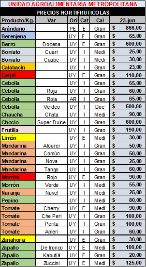 Según datos de la Unidad Agroalimentaria Metropolitana (UAM), el lunes 23 de junio se registró una mayor concurrencia de compradores, impulsada por la ola polar. Se incrementó el interés en hortalizas secas o pesadas.