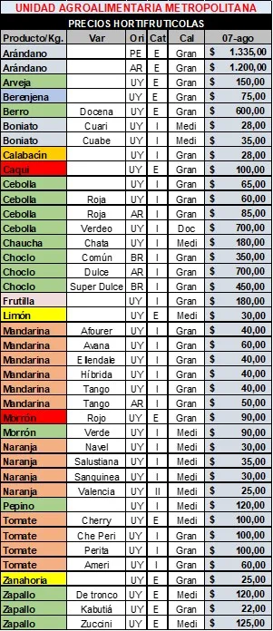 Mercado. Ahora, informamos sobre la comercialización, desde los informes de Precios Mayoristas de la Unidad Agroalimentaria Metropolitana, U.A.M., a saber: