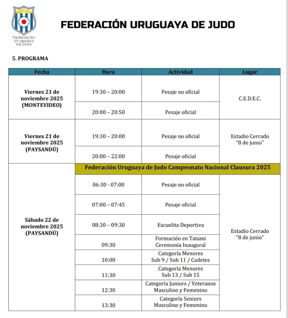 También estará en Paysandú el presidente de la Confederación Sudamericana de Judo, Oscar Cassinierio, quien además ejerce como vicepresidente de la Confederación Panamericana. Su participación incluye encuentros institucionales y acompañamiento al torneo, en un marco que busca posicionar al judo uruguayo en el calendario internacional del próximo año.