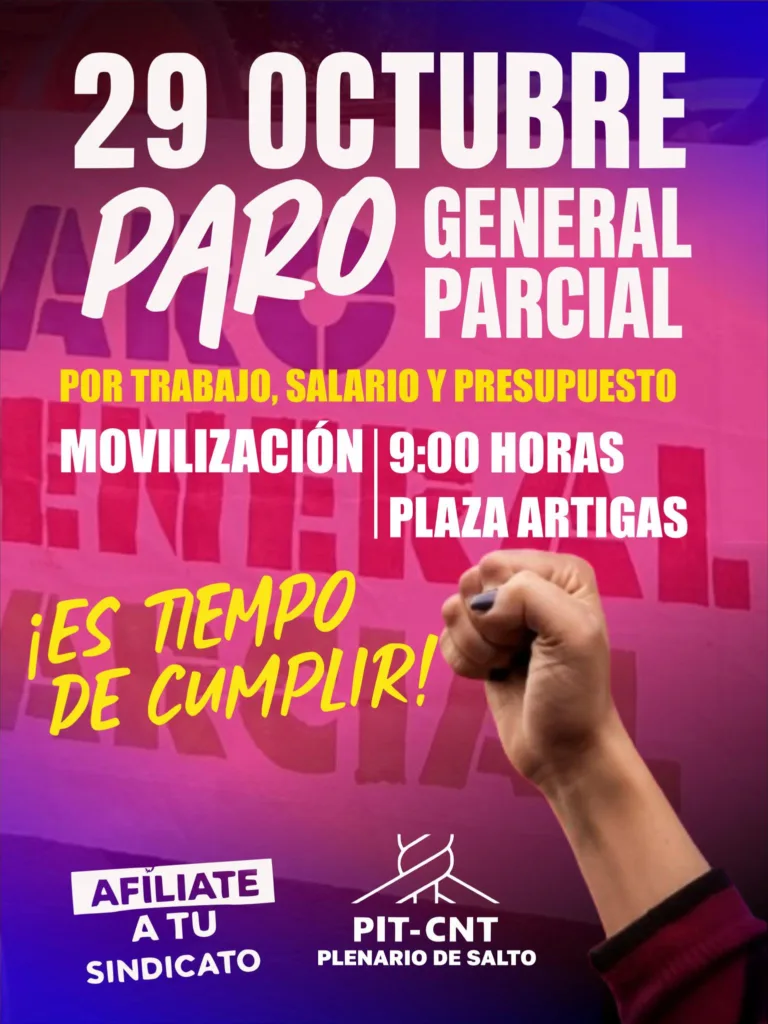 La presidenta del Plenario Departamental, profesora Marcela da Col, detalló a EL PUEBLO los alcances del paro general parcial convocado para este 29 de octubre bajo la consigna «por trabajo, salario y presupuesto». Si bien la medida central es de 9 a 13 horas, varios sindicatos extenderán la paralización. La situación del citrus y el conflicto en ADEOMS serán ejes de la oratoria local.