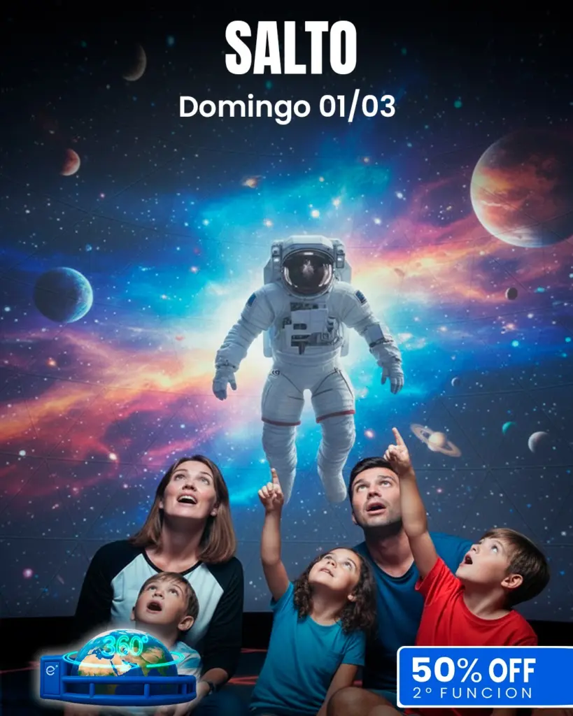 El Planetario Móvil 360° se instala en Salto este domingo con funciones inmersivas para toda la familia, aventuras temáticas y entradas con promociones.