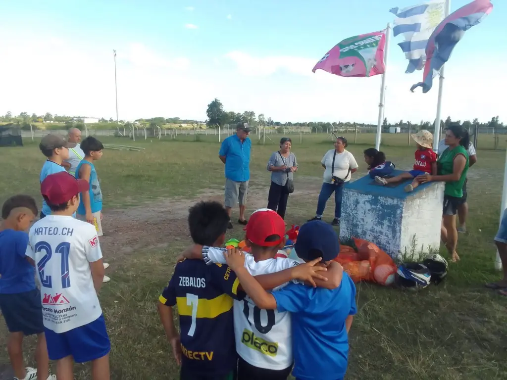 El “Cacho” no está solo en la misión. Tiene colaboradores. Cuando va cayendo la tarde, los gurises van llegando. No les falta una botellita de agua y las pelotas invitan al “picado”.