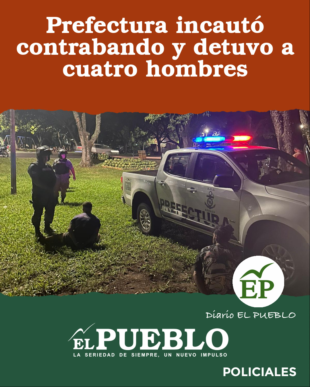 Un procedimiento de patrullaje preventivo en la zona del Club de Pesca permitió interceptar una embarcación sospechosa, detener a cuatro hombres e incautar mercadería y un vehículo.
