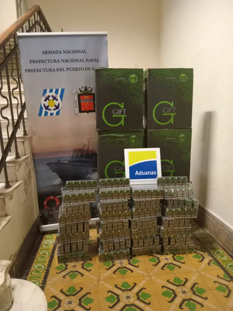 Durante el procedimiento se incautaron el vehículo y los nueve bultos de mercadería. Se dio intervención a Aduanas de Salto, organismo que estableció un valor primario total estimado en $1.052.400 pesos uruguayos, incluyendo tanto los cigarrillos como el vehículo.