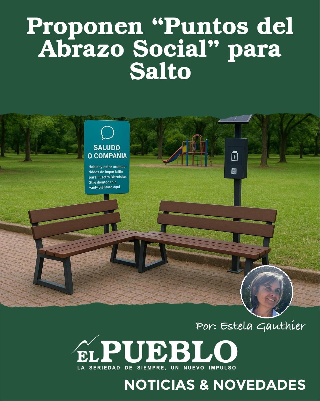 La iniciativa plantea la instalación de bancos enfrentados, señalética positiva, información accesible sobre servicios de apoyo psicológico y cargadores solares para celulares. La idea es generar entornos que inviten a las personas a detenerse, sentarse y conversar, pero también a acompañarse en momentos de soledad.