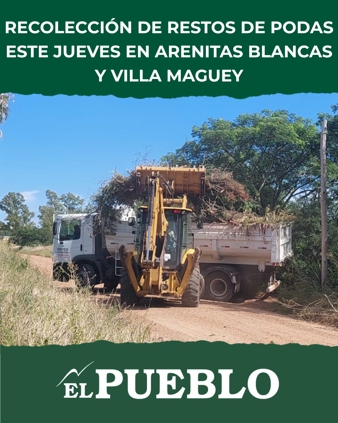 El Gobierno de Salto informó que este jueves 11 de diciembre se llevará adelante una nueva instancia de recolección de restos de podas en dos zonas de la ciudad: Arenitas Blancas y Villa Maguey. La jornada forma parte del cronograma mensual que impulsa el Área de Espacios Verdes, que cada segundo jueves del mes destina cuadrillas y maquinaria específica para este servicio.
