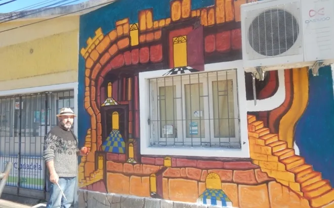 Por las vueltas de la vida conocimos a Ricardo, hablamos, compartimos algunos pensamientos, discrepamos en otros, pero, siempre aprendimos. Entonces supimos que era un poco de esa delgada línea energética de dos barrios, de Huracán y de Lazareto, y que era la esencia de ambas vecindades, que en un radio pequeño estaba de un lado del Lazareto y del otro de Huracán pero siempre era por las mismas calles, la vieja Guayabos, hoy Michelini, la señorial Cervantes, la altiva Washington Beltran, la calle Piedra, que ya no es de piedra, Varela, Vilardebó, la sede de Huracán, la sede de Lazareto y los personajes populares de la zona que conformaban, y lo siguen haciendo, el rico patrimonio de todos, la Cortada de Lazareto que bien pudo ser la de Huracán, pero en fin, por esas orillas Ricardo empezó a ponerle colores a los días desde muy chico, desde cuando fue absorbiendo las enseñanzas de los maestros del pincel, como el querido “Ojito” César Rodríguez Musmanno.