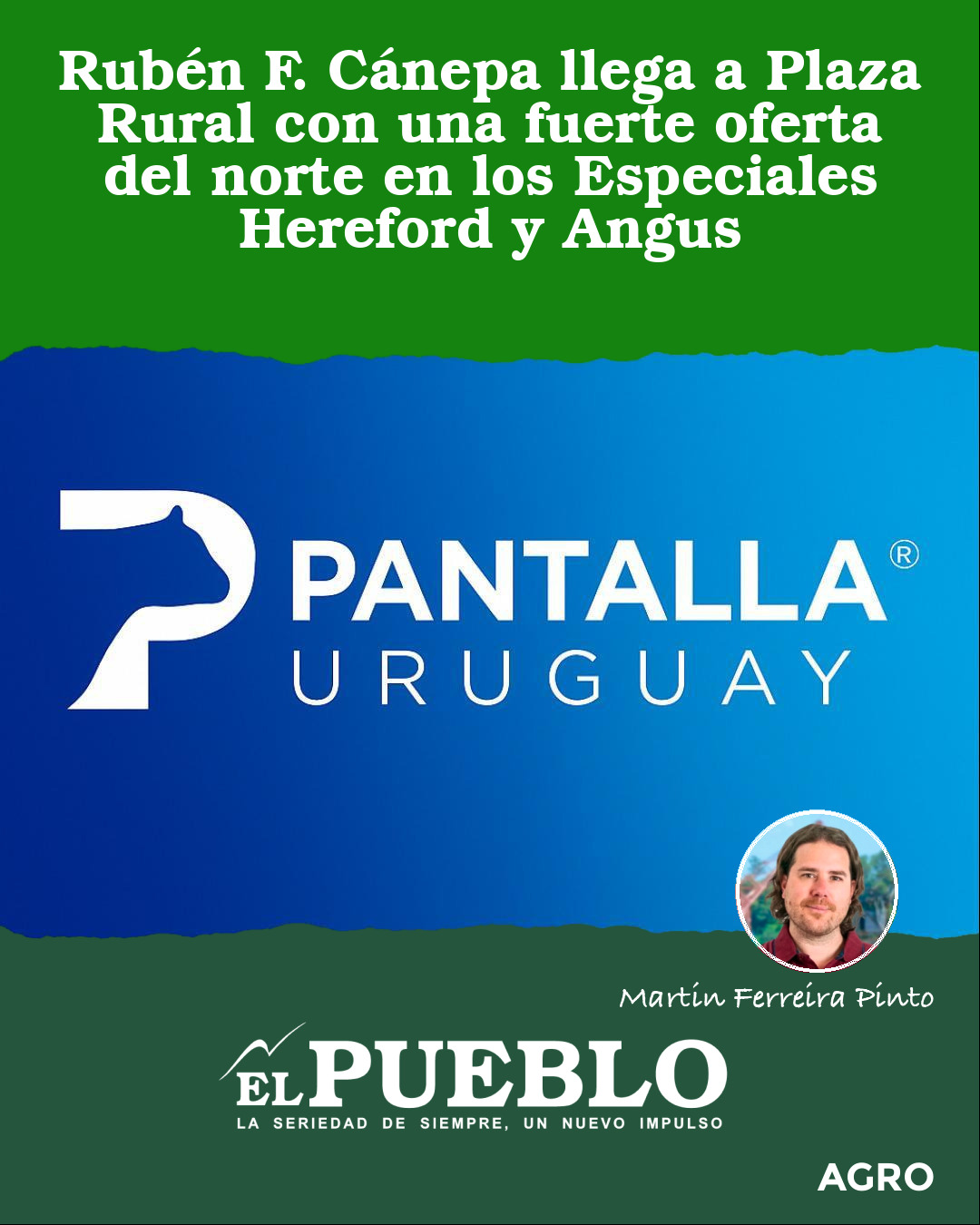 Con volumen, calidad y ganado bien desarrollado a campo, Rubén F. Cánepa Agronegocios dice presente en la primera edición del año de Plaza Rural, participando en los remates 315 y 316, que se realizarán en el marco de Agro en Punta desde el Centro de Convenciones de Punta del Este.