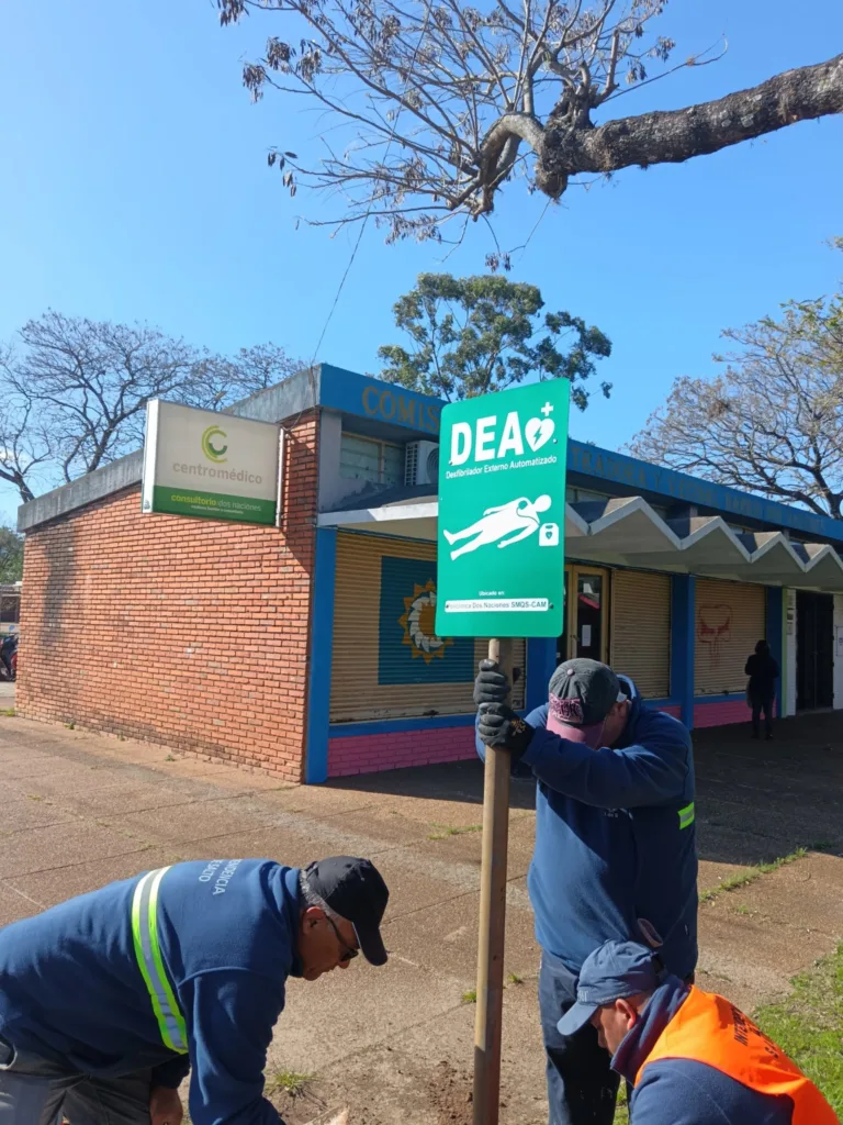 Además, se instalaron carteles informativos en los cuatro puntos del Cerro donde actualmente funcionan desfibriladores: el local de Tata, el Batallón, la UBA 5 y la Policlínica del Centro Médico del barrio Dos Naciones.