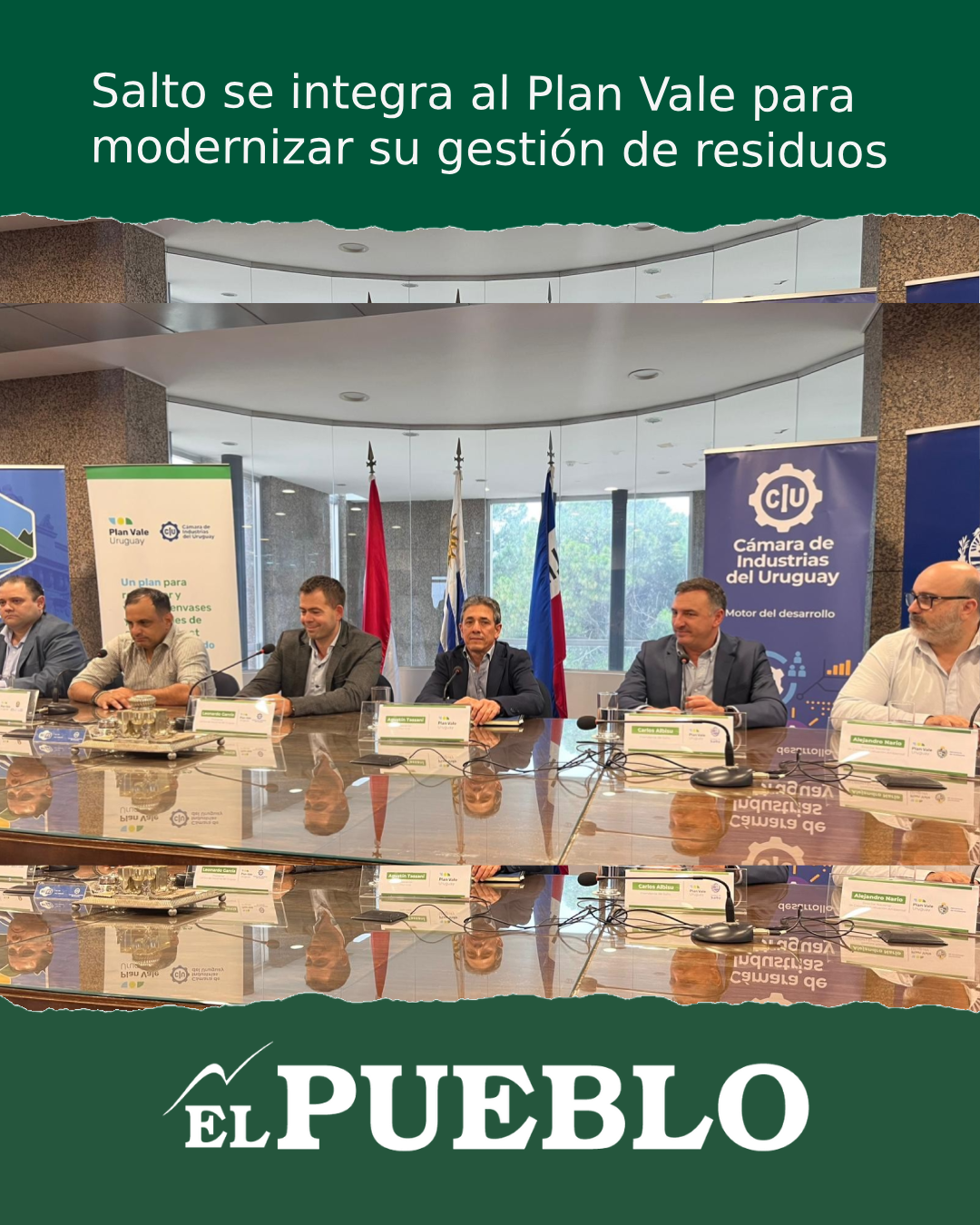 En la sede de la Cámara de Industrias del Uruguay, en Montevideo, el intendente de Salto, Carlos Albisu, firmó este jueves la adhesión del departamento al Plan Vale, el plan nacional para recuperar y valorizar envases y materiales de envasado posconsumo, que impulsa la economía circular y la mejora de la gestión de residuos en todo el país.
