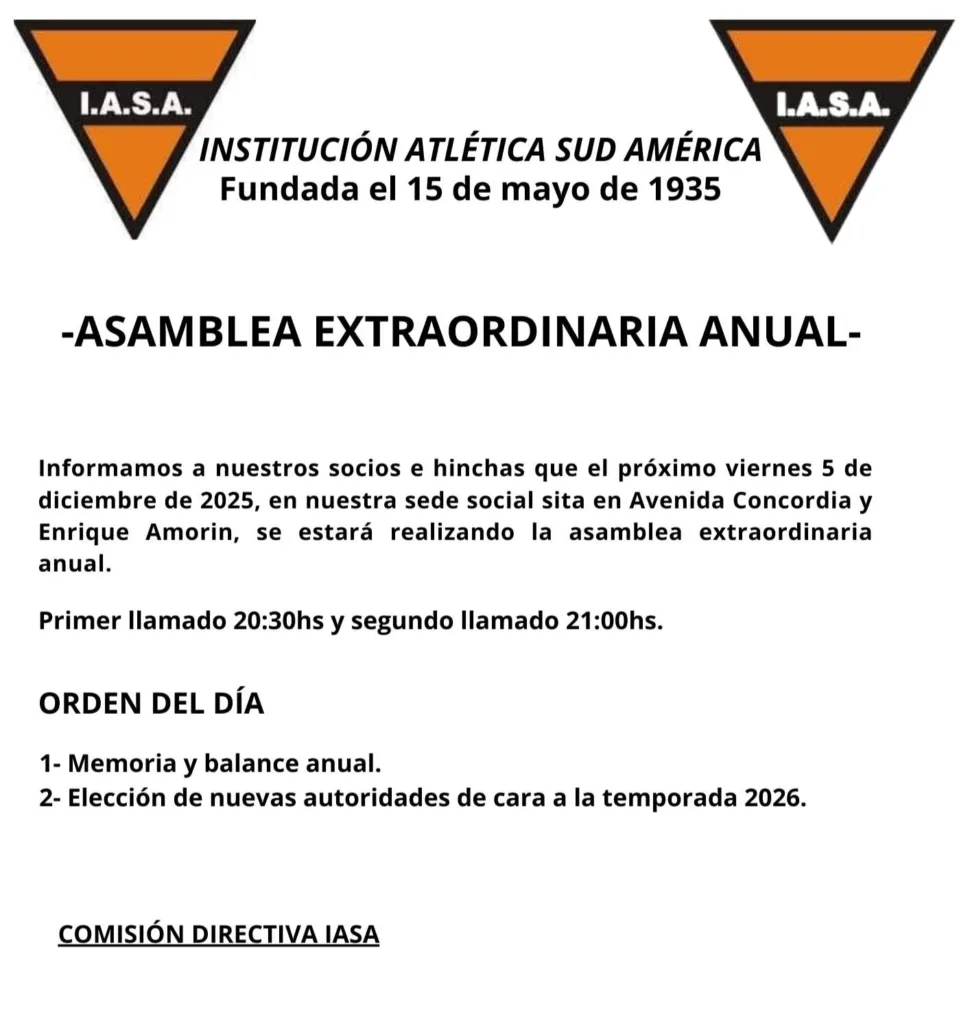 Este viernes es un viernes especial en Sud América, desde el momento que la Comisión Directiva convocó a asamblea anual ordinaria. Los puntos esenciales para ser discutidos por quienes asistan y, de última, la elección de nuevas autoridades.