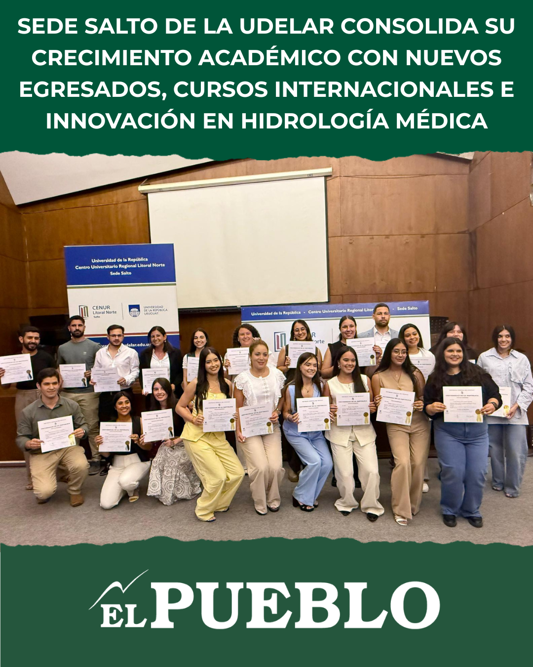 Las titulaciones corresponden a las carreras de Licenciatura en Trabajo Social, Licenciatura en Ciencias Sociales, Licenciatura en Psicología, Licenciatura en Enfermería, Doctorado en Abogacía y Doctorado en Veterinaria, consolidando el rol de Salto como polo universitario regional.