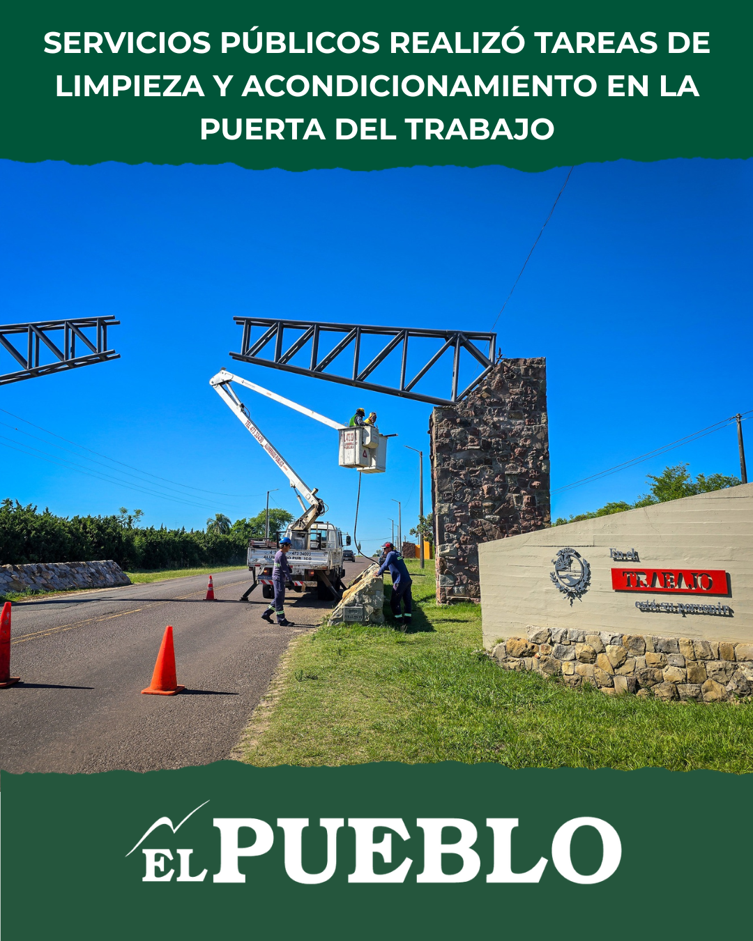 El Gobierno de Salto, a través del Departamento de Servicios Públicos y sus distintas áreas operativas, llevó adelante tareas de limpieza y acondicionamiento en la estructura de la Puerta del Trabajo, ubicada sobre la avenida Luis Batlle Berres, uno de los principales accesos a la ciudad por el Norte.