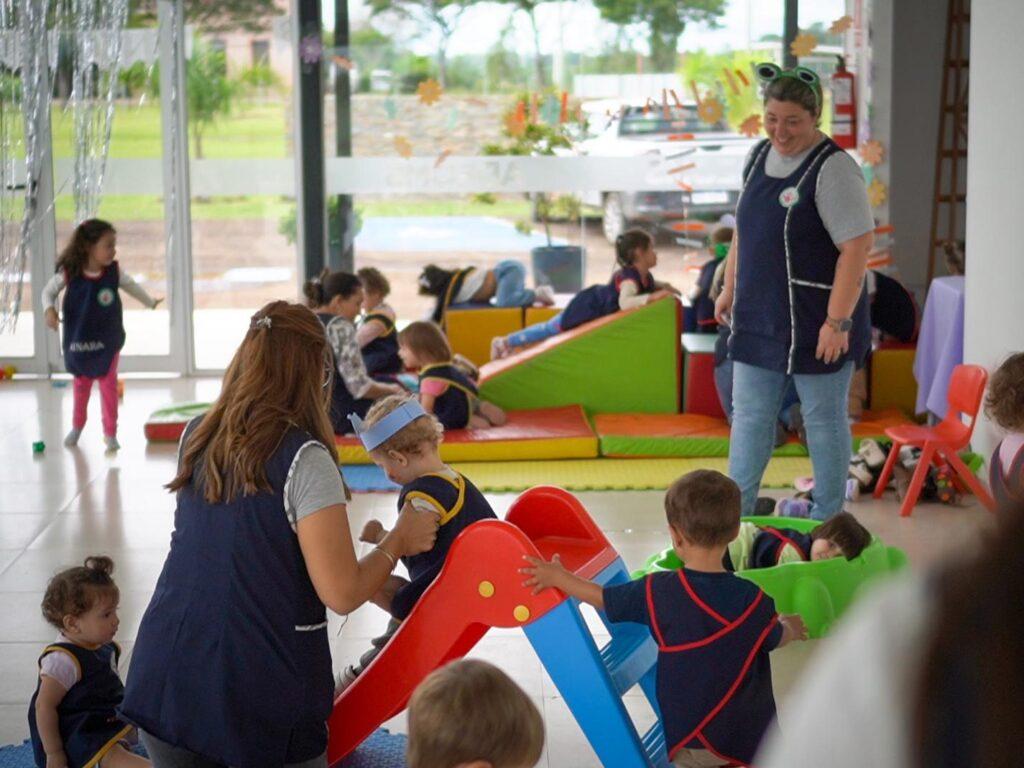 La maestra coordinadora del centro, Marina Dos Santos, informó que actualmente el servicio atiende a tres niños en maternal, quince en grupos de un año, veinticuatro en nivel dos y dieciocho en nivel tres. “El equipo está conformado por profesionales en Trabajo Social, Psicología, Psicomotricidad, nueve educadoras y dos auxiliares de servicio”, agregó. El 80% de los niños provienen de familias municipales y el 20% de la comunidad.
