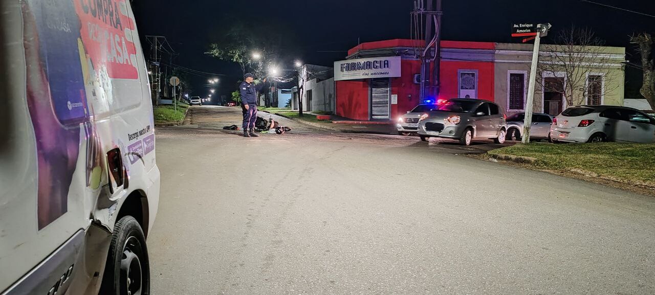 Un nuevo siniestro de tránisto ocurrió en nuestra ciudad, en la zona del Cerro. El siniestro se sucedió en la intersección de la Av. Enrique Amorim e Invernizzi, cuando una camioneta que circulaba por Invernizzi, hacia el Sur, impacta contra la moto que era conducida por una mujer, la que circulaba por la Av. Amorim de Este a Oeste.