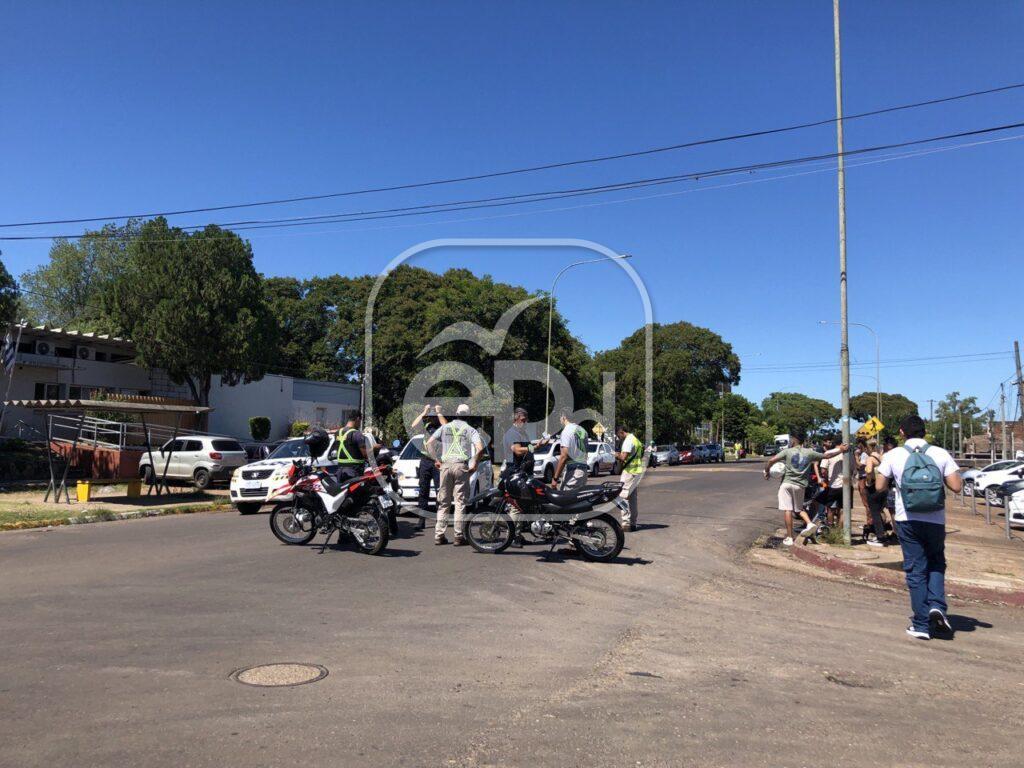 Hace instantes, en la intersección de la Av. Gobernador de Viana y José Pedro Varela se dió un sinistro de tránisito entre un auto y una moto, ambos circulando en el mismo sentido, hacia el Norte.
