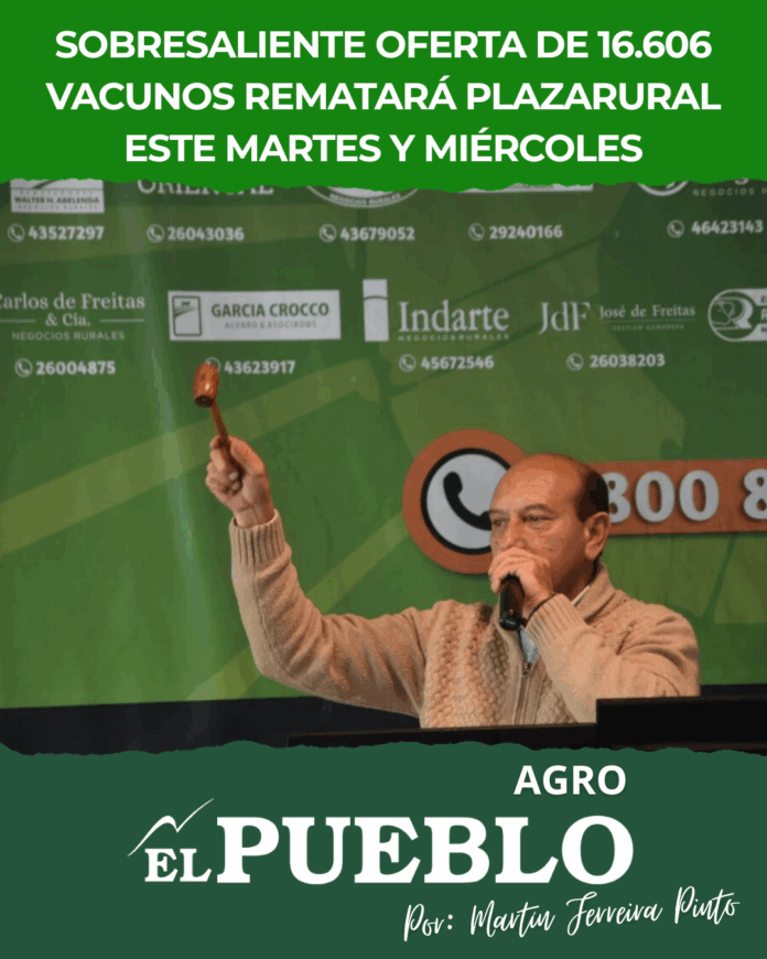 Este martes 23 y miércoles 24 de septiembre Plaza Rural vuelve a ofrecer una gran oferta en volumen y calidad, con las mejores condiciones de compra del mercado y con la financiación del Banco de la República. Son 16.606 vacunos los que integran la oferta Plaza Rural en el remate 310, en venta presencial en el Hotel Cottage y con transmisión a través de canales cable, internet y streaming.