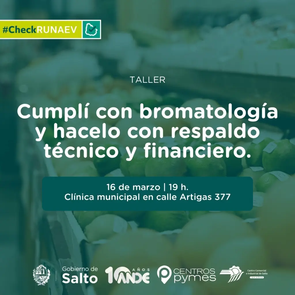 El lunes 16 de marzo se realizará en Salto un taller sobre RUNAEV y el programa CHECK RUNAEV, que brinda asesoramiento técnico y financiamiento para empresas.