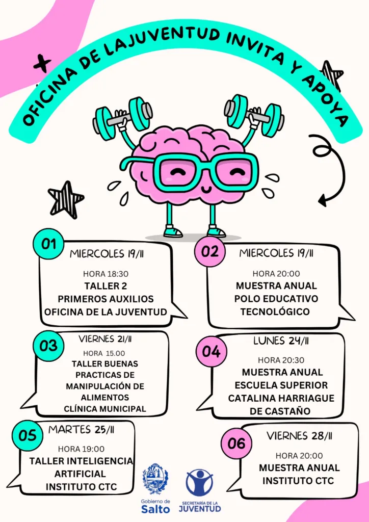 La Oficina de la Juventud del Gobierno de Salto anunció una agenda de actividades formativas y educativas que se extenderá hasta el 28 de noviembre, en trabajo conjunto con instituciones educativas y espacios de capacitación del departamento.