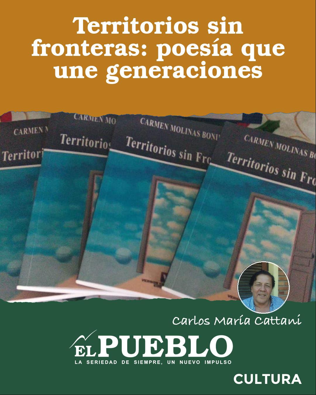 “La literatura uruguaya suma una nueva voz con la publicación de Territorios sin fronteras, el más reciente libro de la poeta Carmen Molinas Bonilla, editado por Versos Compartidos en 2024. La obra, que reúne más de un centenar de páginas, se organiza en tres secciones —Territorio de añoranzas, Poemas de la cuarentena y Etapas de poesía— y propone un viaje íntimo por la memoria, el amor y la resiliencia”.
