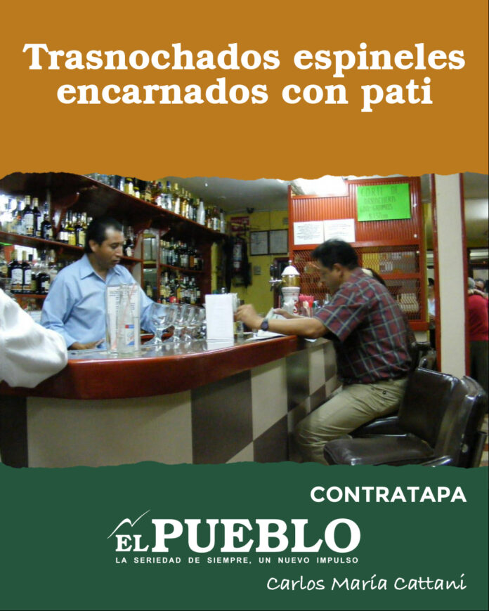 Ser “trasnochado” es un delito menor, pero reiterado: pensar cuando ya no da para más. Antes uno se trasnochaba una copa en el boliche del barrio cada noche, algunas más si estaba con amigos o con parroquianos afines a soltar la lengua con cierta filosofía y experiencia de vida o con ciertos fanatismos deportivos, políticos, culturales, y entre medio de los silencios de una guitarra, un cantor, una partida de truco.