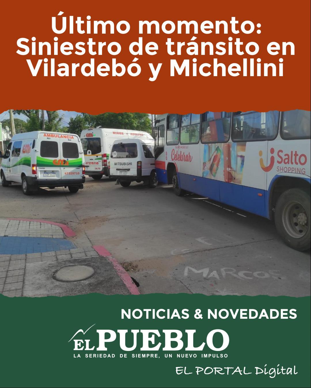 Hace instantes, un ómnibos de la Intendencia de Salto colisionó con una camioneta en la intersección de las calles Vilardebó y Zelmar Michellini de nuestra ciudad. En el lugar se hicieron presentes unidades de emergencia médica y personal de tránsito.