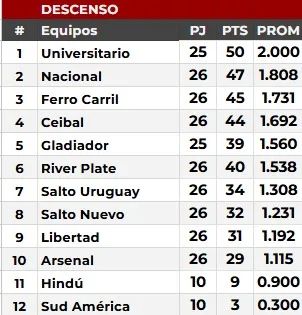 | UNIVERSITARIO (4) | SUD AMÉRICA (0) |