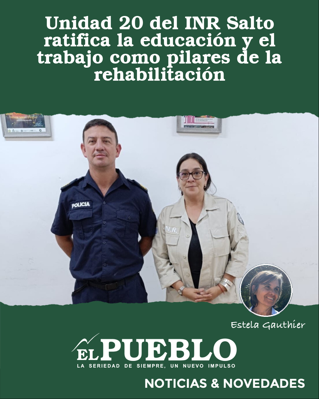 La Unidad Nº 20 del Instituto Nacional de Rehabilitación (INR) en Salto inicia una nueva etapa de conducción con la asunción del Sub Oficial Mayor Fernando López como director, en un proceso de transición que se da mientras la directora saliente, María de los Ángeles Machado, se apresta a asumir un nuevo cargo dentro del Ministerio del Interior .
