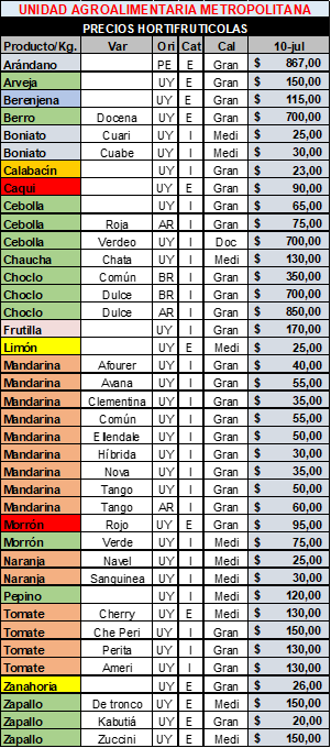 Durante la semana del 6 al 11 de julio, se destacó un aumento considerable en la oferta de frutilla, especialmente desde el litoral Norte, lo que presionó sus precios a la baja. Las frutas presentaron mejor coloración y tamaño, aunque las heladas anteriores habían afectado la producción. También se mantiene en plaza la oferta de melones y sandías brasileñas, pero con menor demanda.