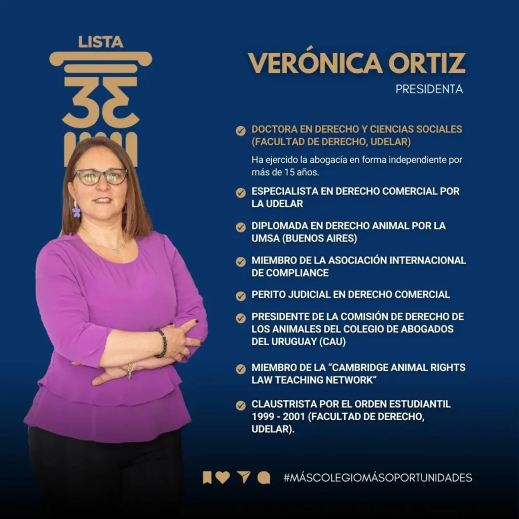 De cara a las elecciones del Colegio de Abogados del Uruguay (CAU) del próximo 8 de octubre, la Dra. Verónica Ortiz, candidata a la presidencia por la Lista 33 “Más Colegio, Más Oportunidades”, presentó sus propuestas con una mirada centrada en la modernización, la transparencia y una participación más equitativa de los abogados del interior.