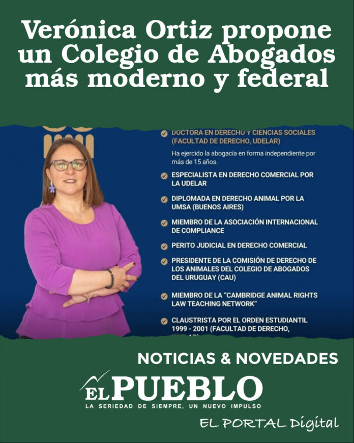 De cara a las elecciones del Colegio de Abogados del Uruguay (CAU) del próximo 8 de octubre, la Dra. Verónica Ortiz, candidata a la presidencia por la Lista 33 “Más Colegio, Más Oportunidades”, presentó sus propuestas con una mirada centrada en la modernización, la transparencia y una participación más equitativa de los abogados del interior.