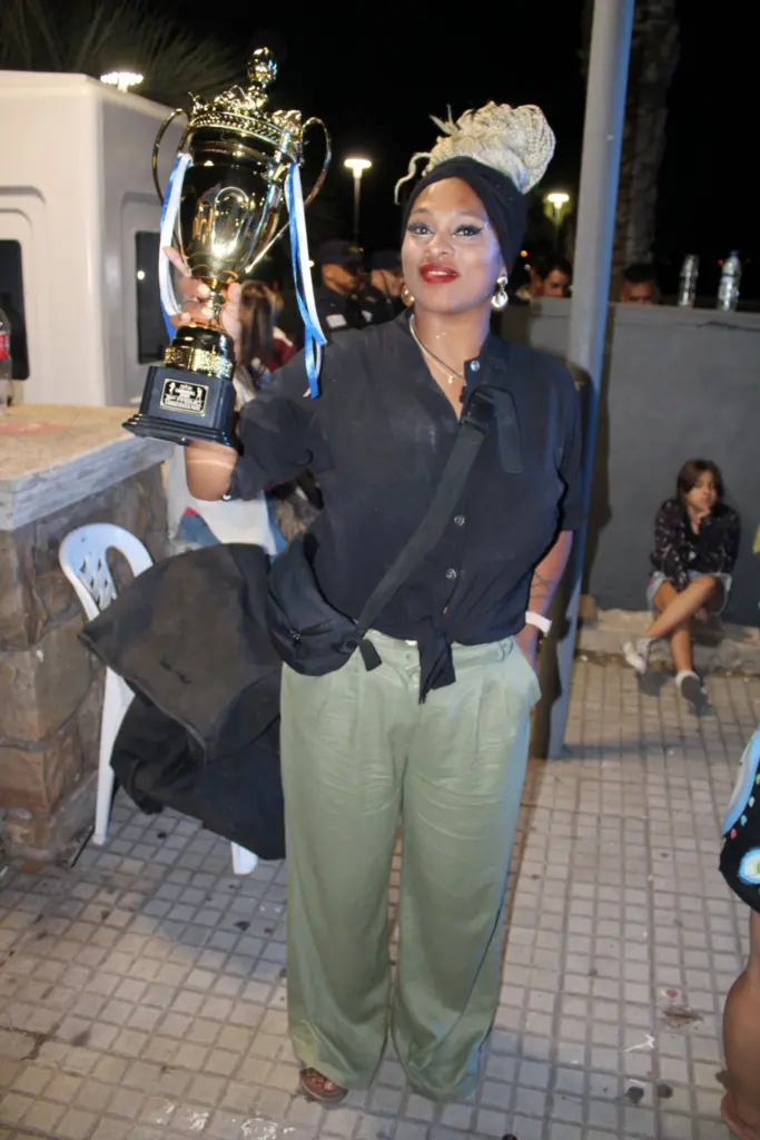 Uno de los momentos más emotivos de la noche fue la distinción a Beatriz Volpi, integrante de Tunguelé, reconocida por su interpretación como Mama Vieja. Con una extensa trayectoria en el candombe local y en los desfiles de Llamadas en Salto, fue coronada como Figura del 2026, recibiendo el aplauso del público y de las comparsas participantes.